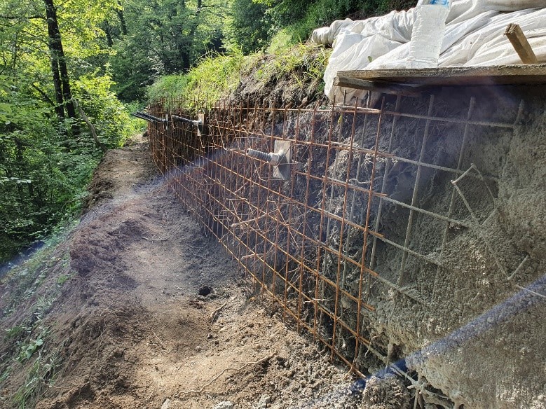 - Ferraillage, pose de barbacanes et projection d’un béton par voie sèche.